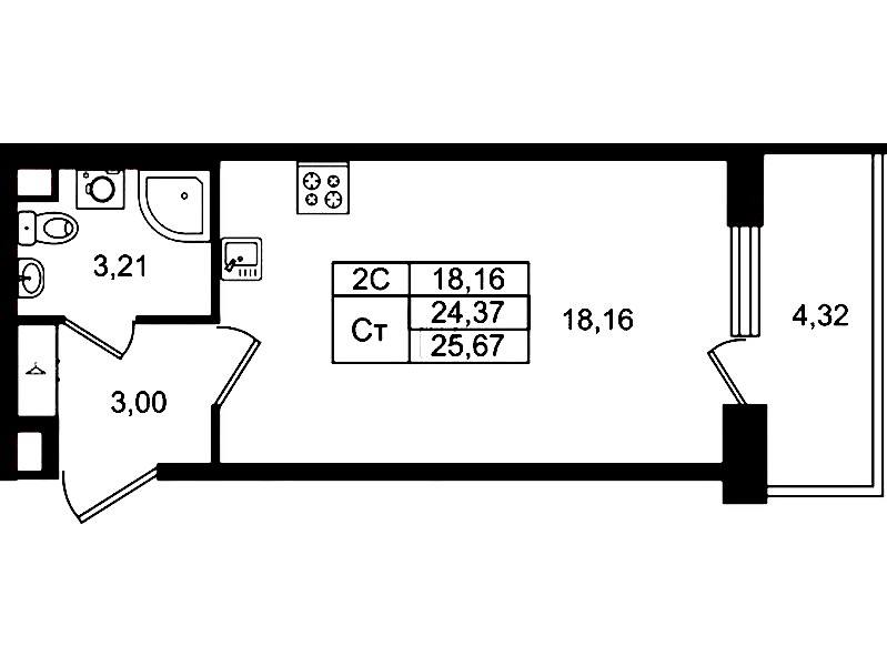Квартира-студия на 2-ом этаже 24,37 кв.м