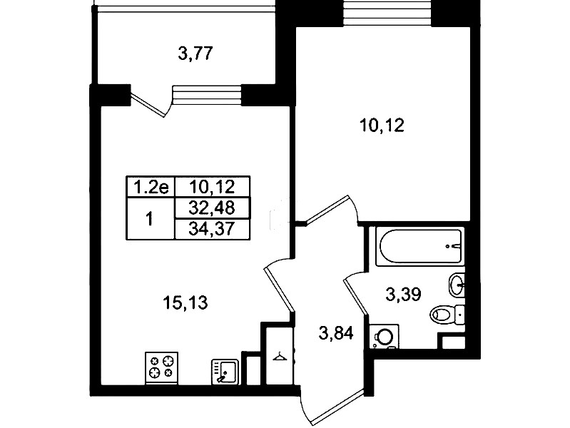 Однокомнатная квартира на 2-ом этаже 32,48 кв.м