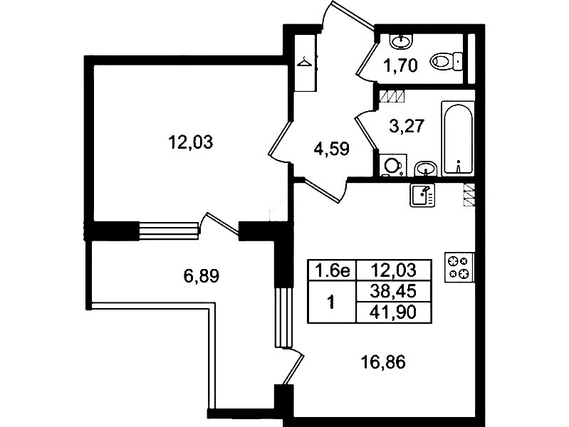 • Площадь38,45 м2