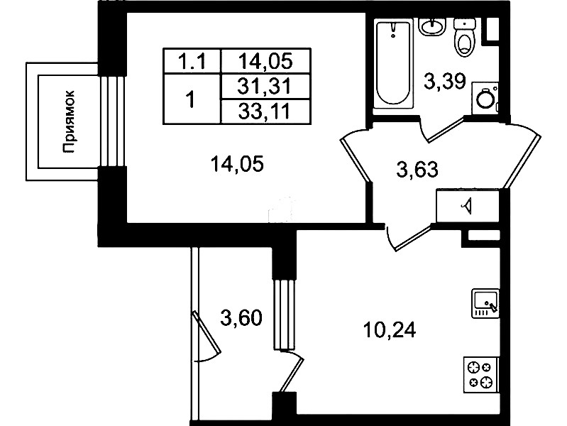 • Площадь кухни10,24 м2