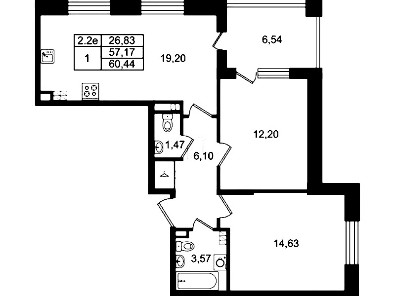 - Площадь57,17 м2