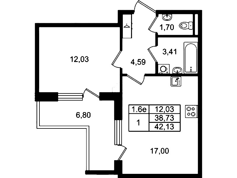 - Площадь38,73 м2