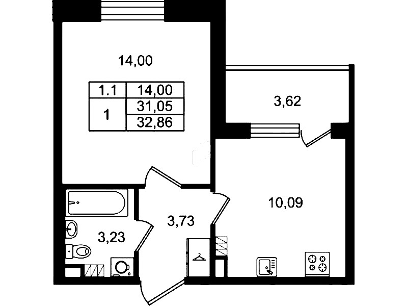 Однокомнатная квартира на 5-ом этаже 31,05 кв.м