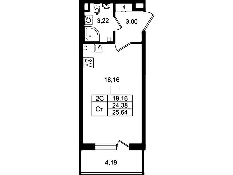 - Площадь24,38 м2