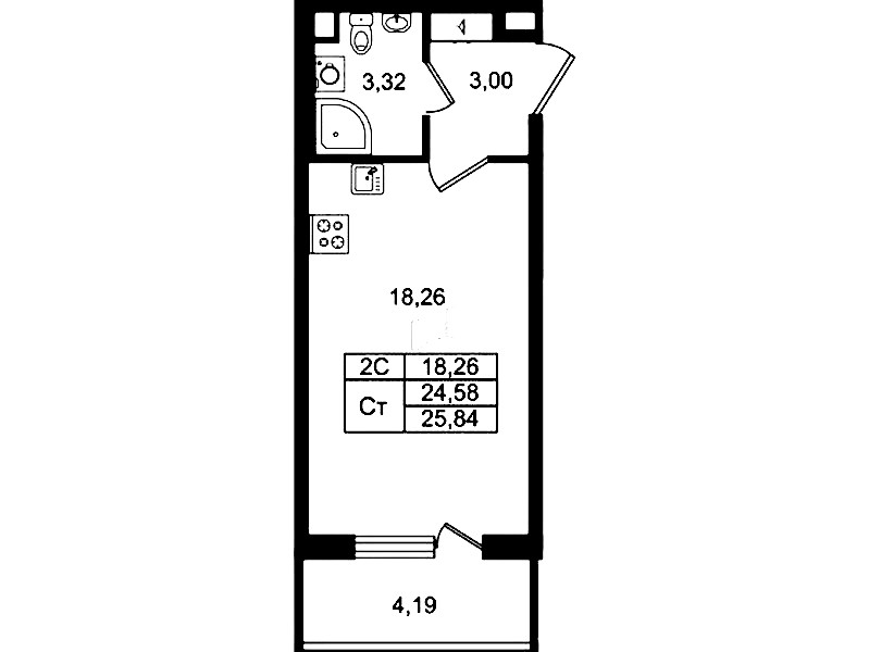 Квартира-студия на 2-ом этаже 24,58 кв.м