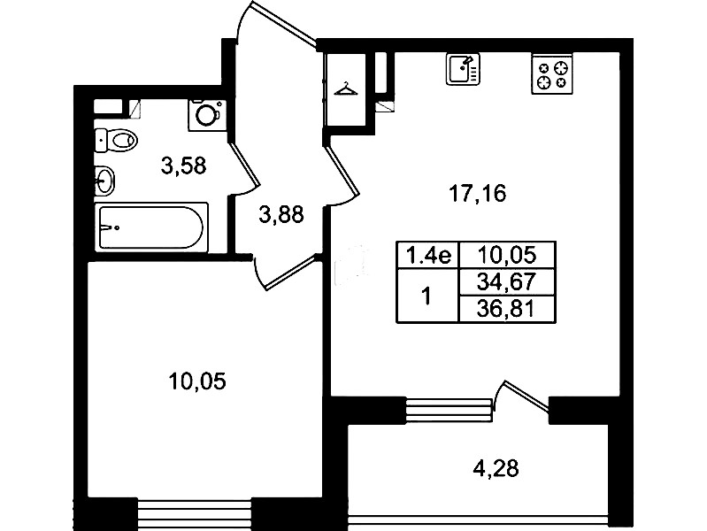 - Площадь34,67 м2