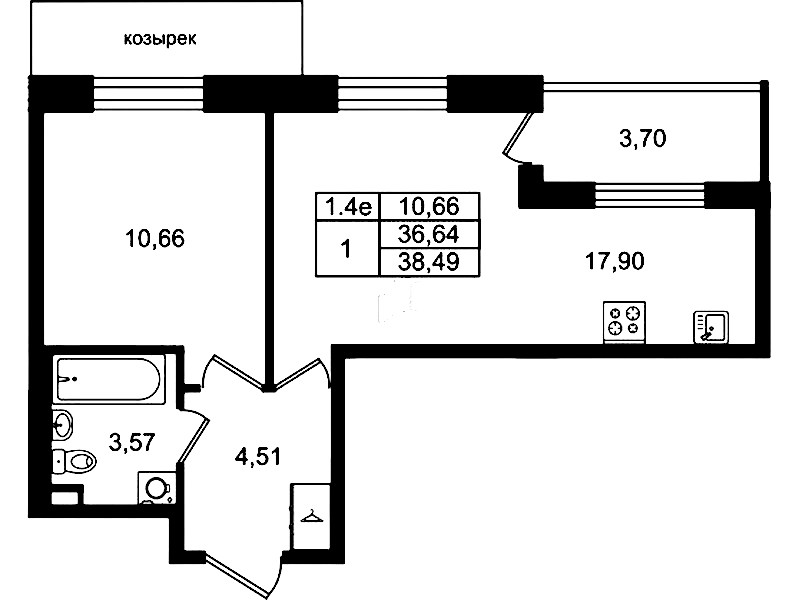 • Площадь36,64 м2