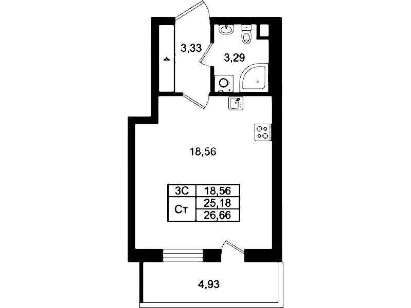 - Площадь25,18 м2