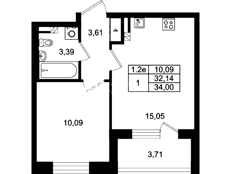 Однокомнатная квартира на 4-ом этаже 32,14 кв.м