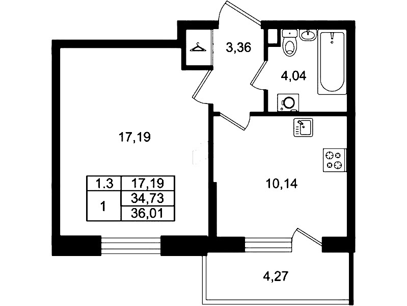 - Площадь34,73 м2