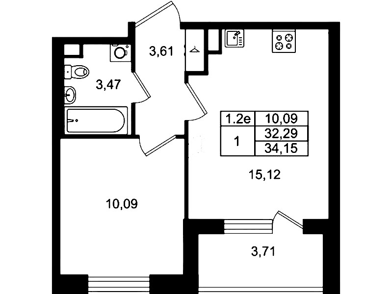 - Площадь кухни15,12 м2