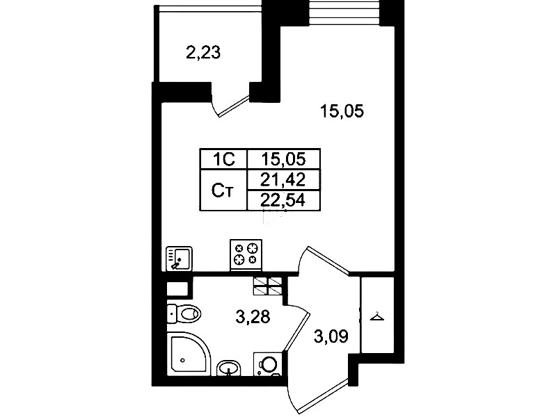 Квартира-студия на 4-ом этаже 21,42 кв.м