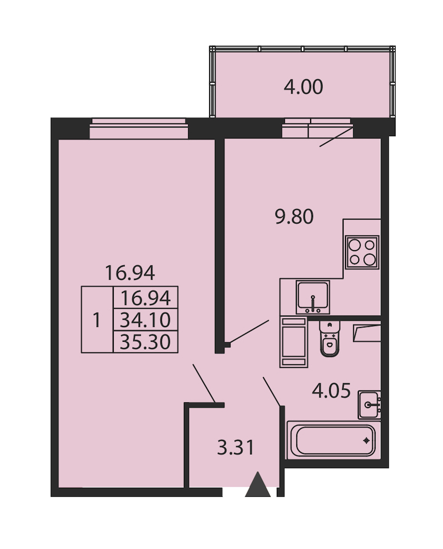 • Площадь34,1 м2