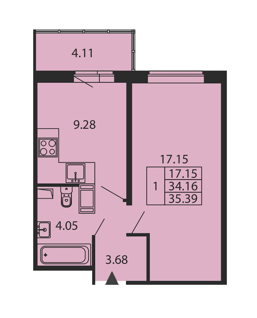 • Площадь34,16 м2