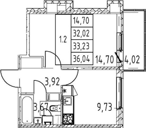 • Площадь кухни9,73 м2