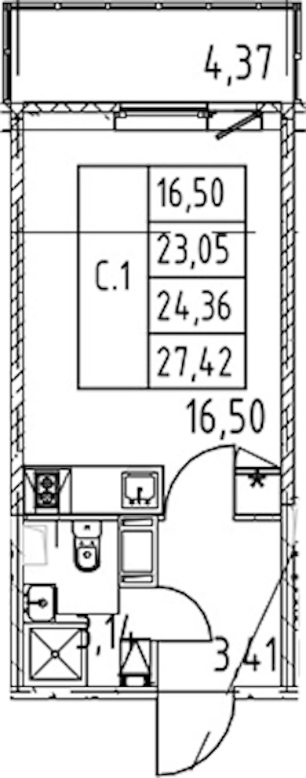 Квартира-студия на 8-ом этаже 23,05 кв.м