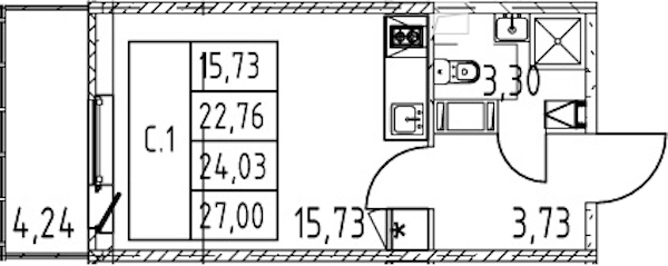 - Площадь22,76 м2
