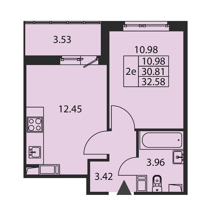 Однокомнатная квартира на 11-ом этаже 30,81 кв.м