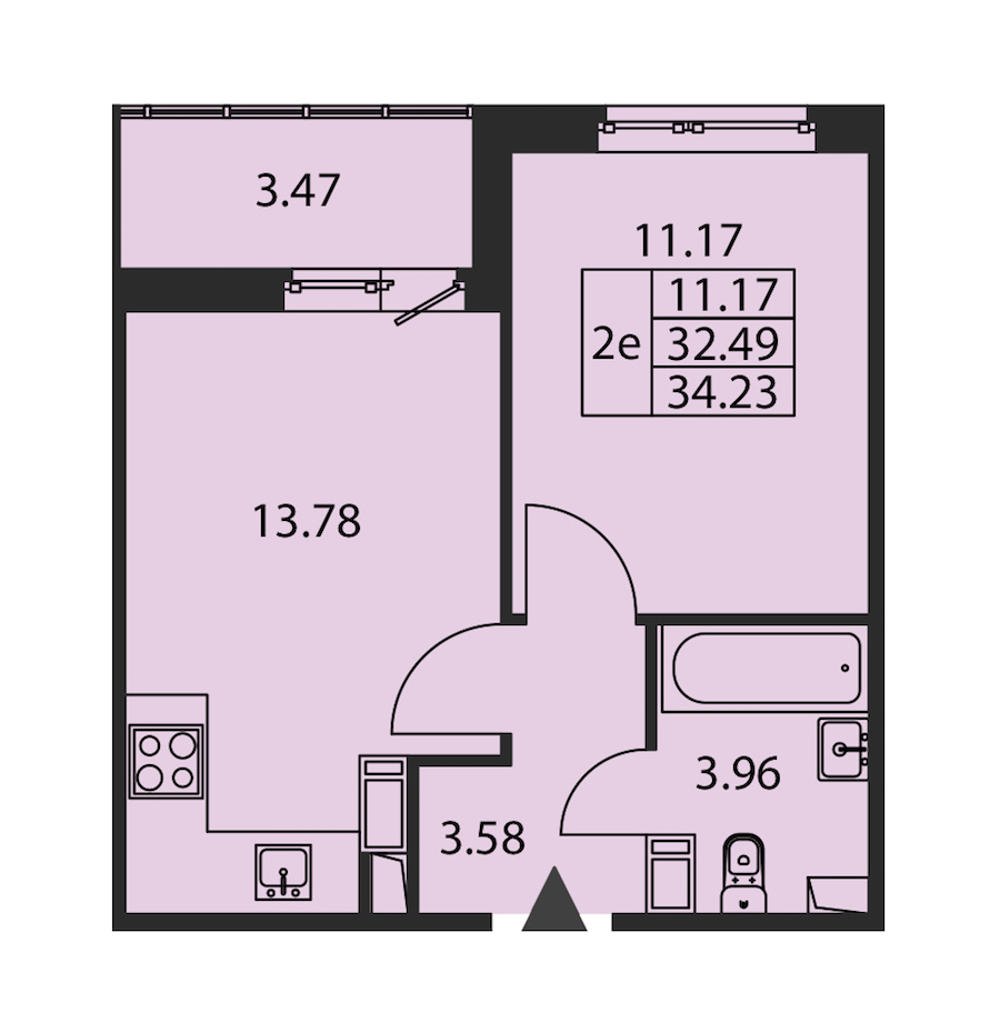 - Площадь кухни13,78 м2