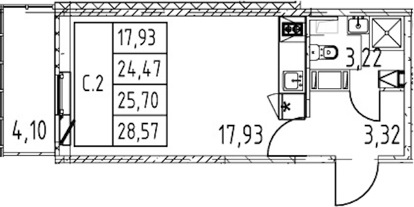 - Площадь24,47 м2