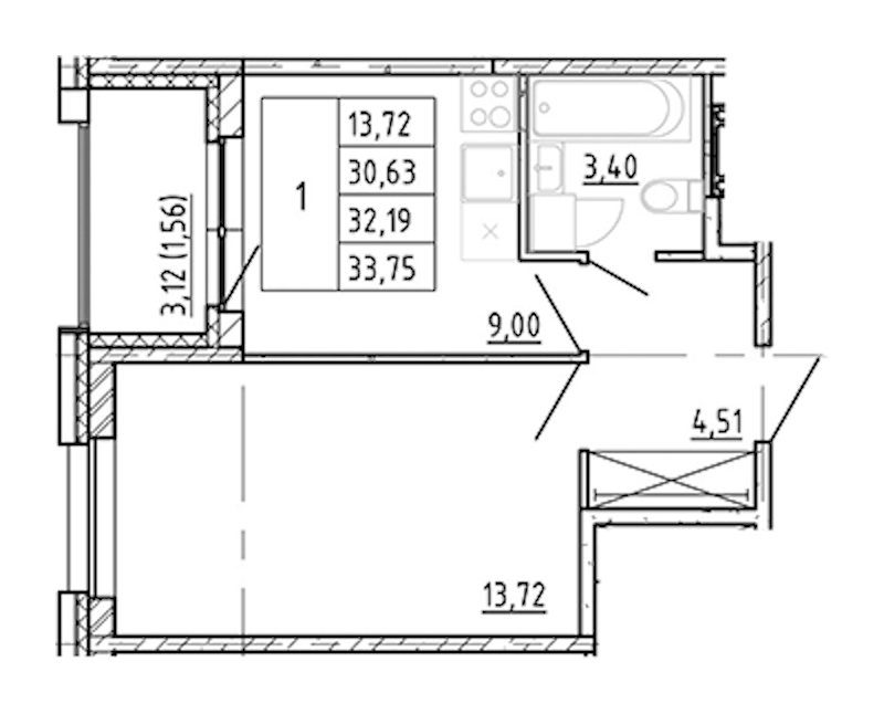 - Площадь30,63 м2