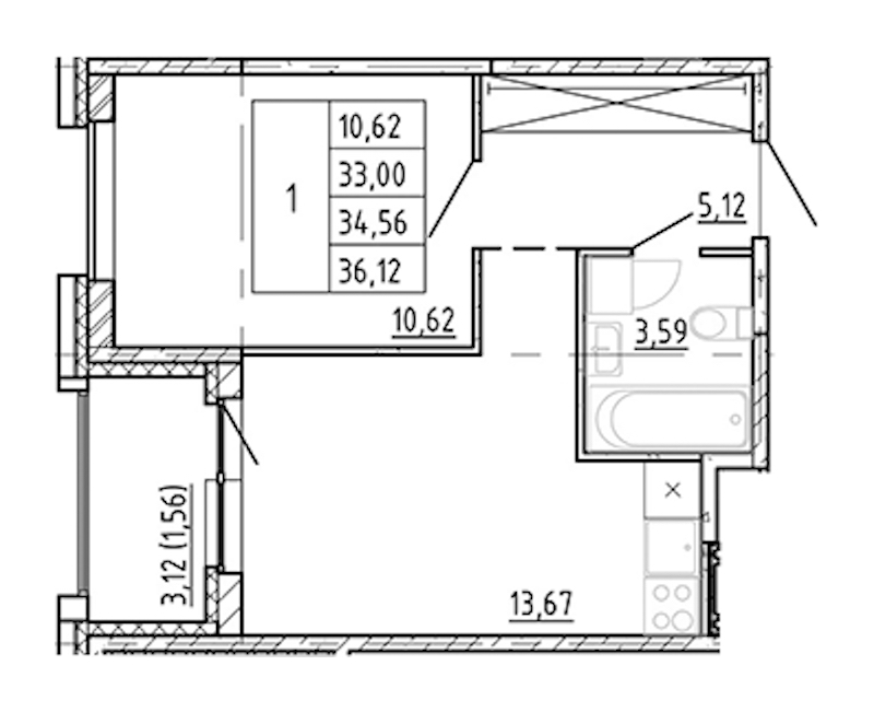 - Площадь кухни13,67 м2