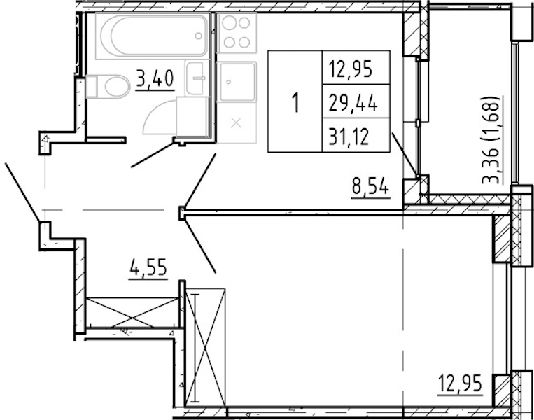 - Площадь29,44 м2