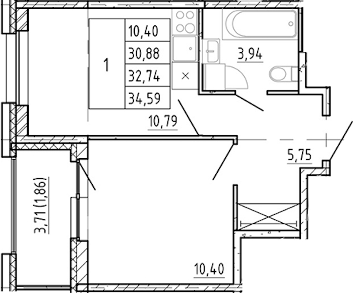 - Площадь30,88 м2