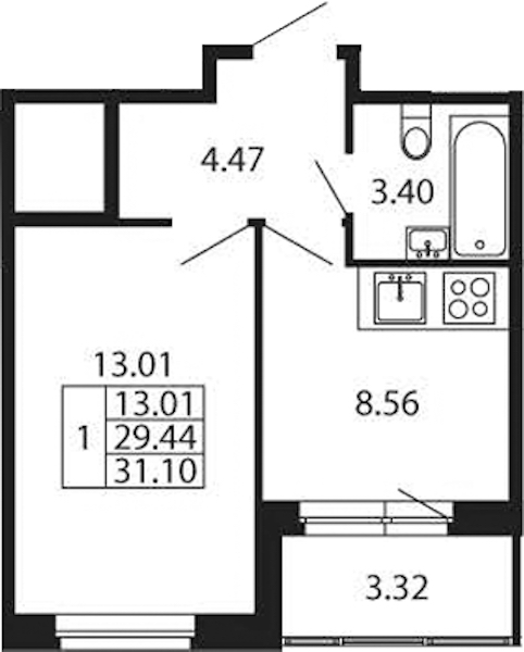 • Площадь29,44 м2