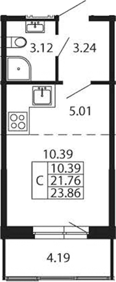 Квартира-студия на 3-ем этаже 21,76 кв.м