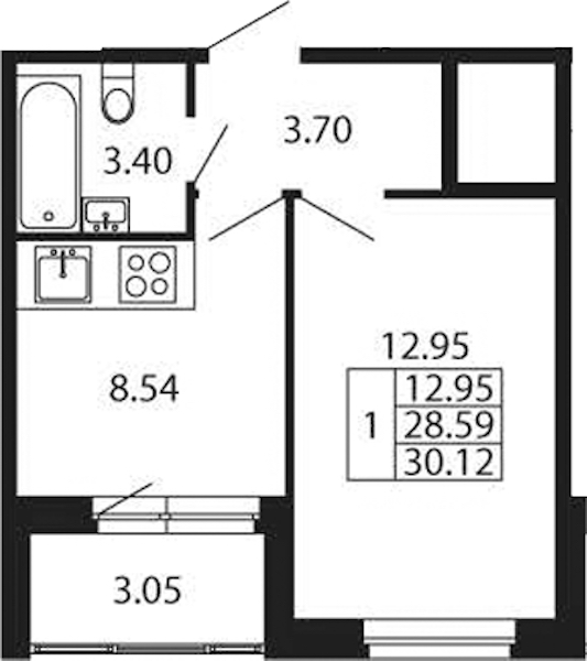 - Площадь28,59 м2