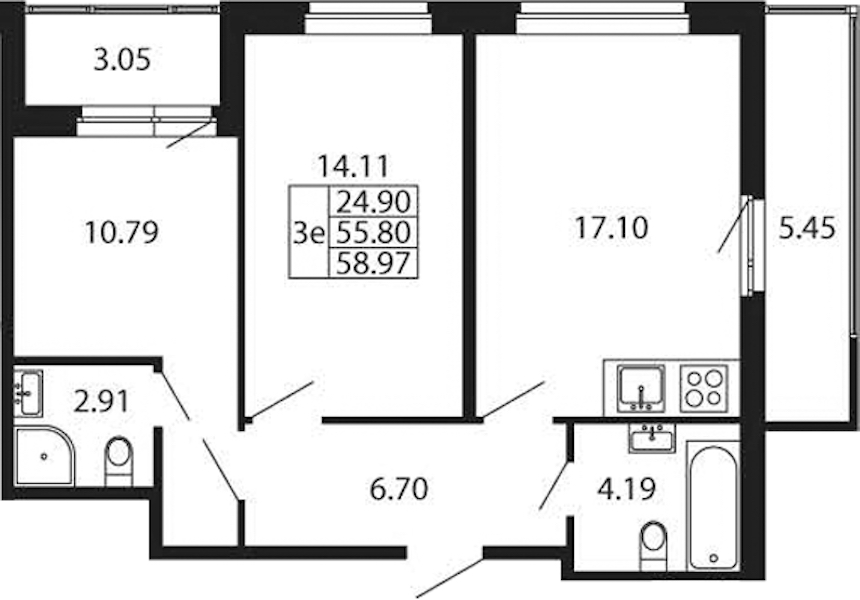 • Площадь55,8 м2