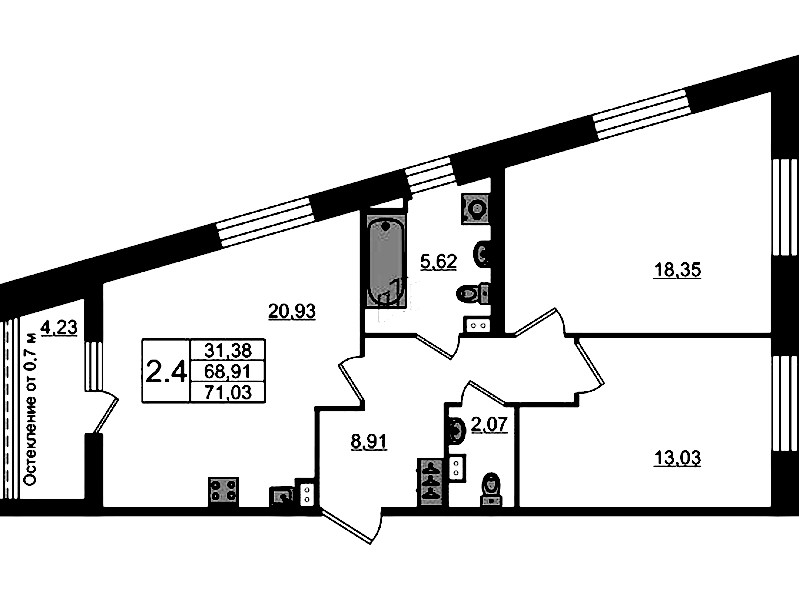 • Площадь68,4 м2