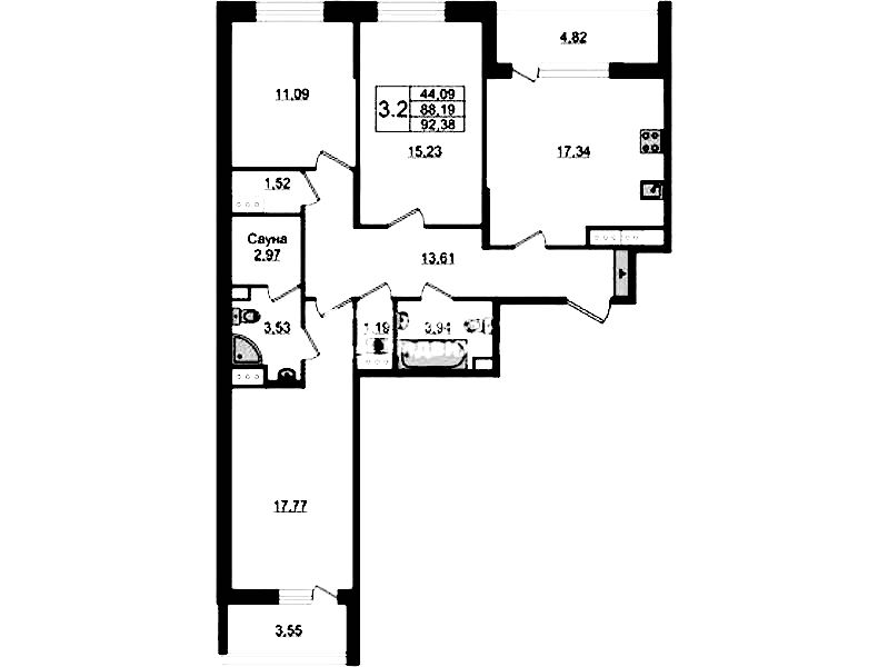 Трёхкомнатная квартира на 2-ом этаже 86,8 кв.м