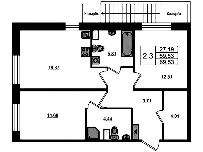 • Площадь68,1 м2