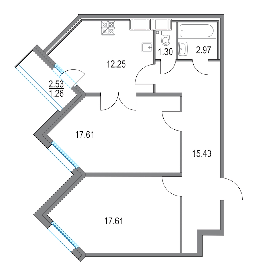 - Площадь кухни12,25 м2