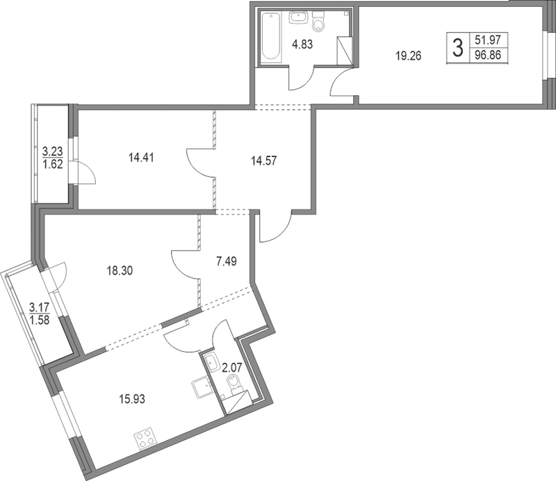- Площадь96,86 м2