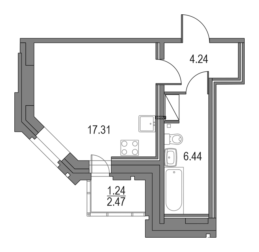 Квартира-студия на 17-ом этаже 27,99 кв.м