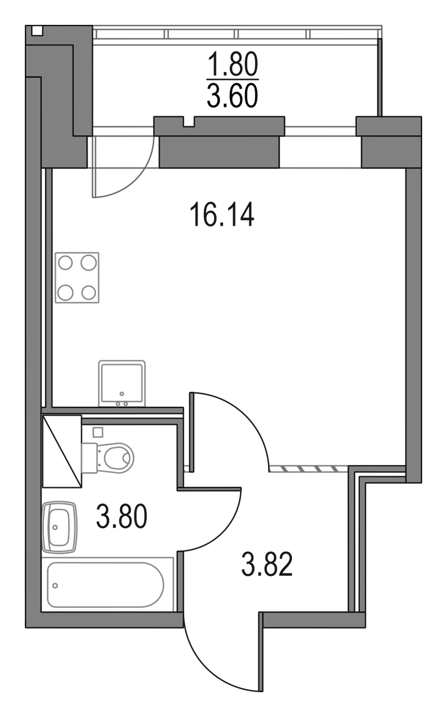- Площадь23,76 м2