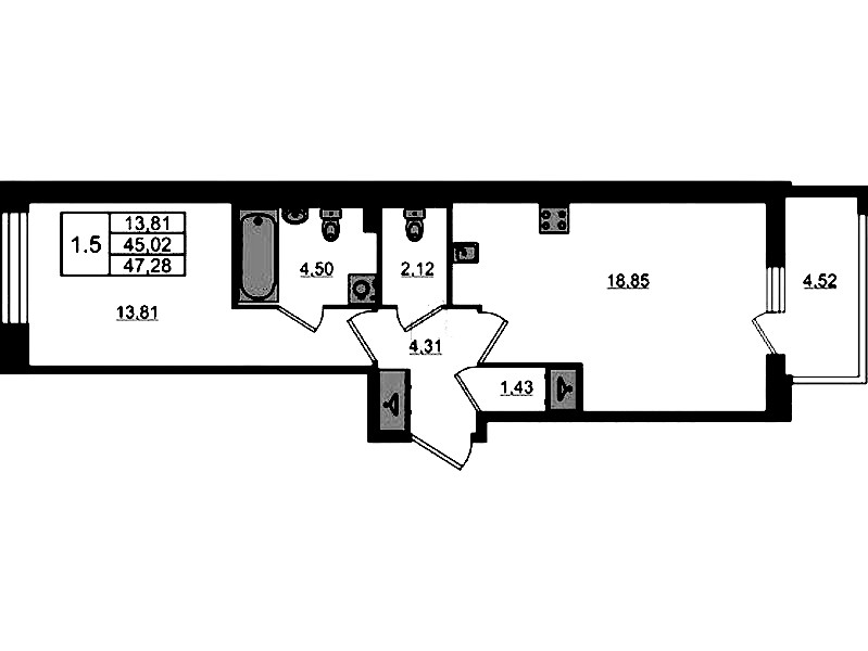 • Площадь45,02 м2