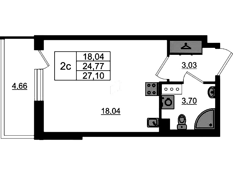 Квартира-студия на 7-ом этаже 24,77 кв.м