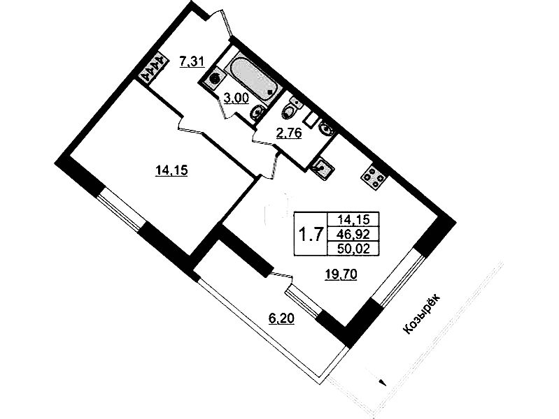 - Площадь46,1 м2