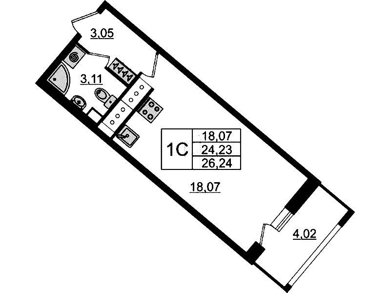 - Площадь24,4 м2