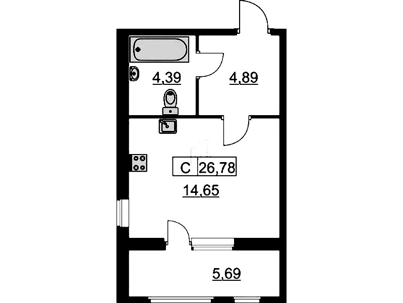 Квартира-студия на 4-ом этаже 26,8 кв.м