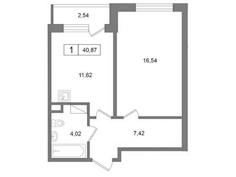 Однокомнатная квартира на 1-ом этаже 40,87 кв.м