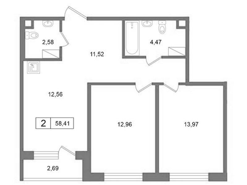 - Площадь58,41 м2