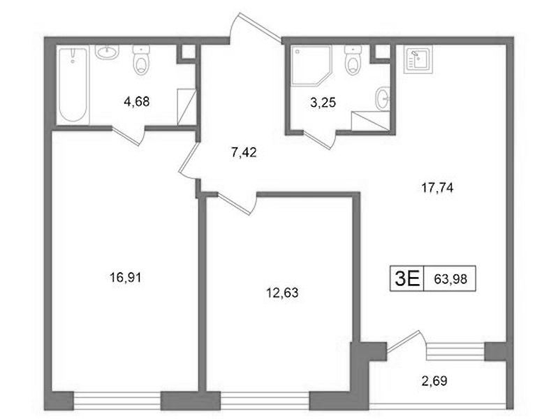 • Площадь63,98 м2
