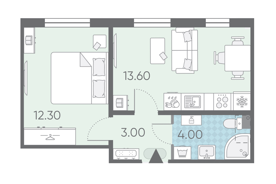 Однокомнатная квартира на 1-ом этаже 32,9 кв.м