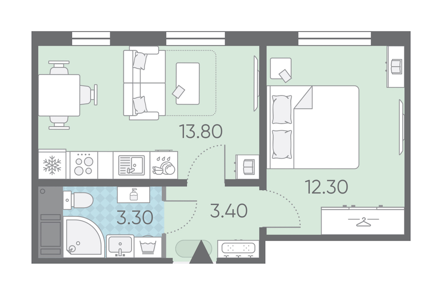 - Площадь32,8 м2