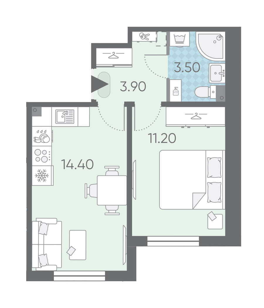 - Площадь кухни14,4 м2